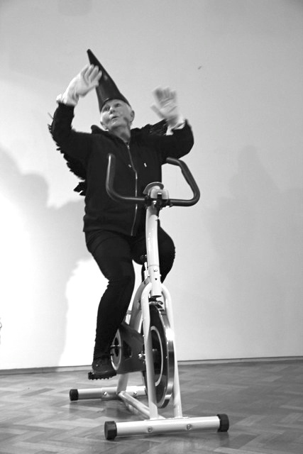 A 30 minute performance where I test run my newly acquired exercise bike. During the ride I demonstrate its value as an aid to enjoyment and creativity, drawing on a range of subjects from colour theory to American rappers, philosophy, feminism and fashion.