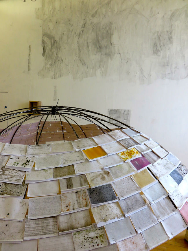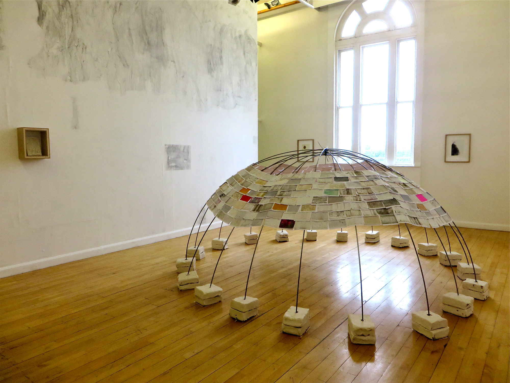 So, the main gallery becomes the site for an experiment in 'interior design', and the walls are marked, papered and hung with a selection of artist-produced, found and collected drawings. A large, sculptural piece which takes centre stage engages with the child's house and references various art historical precedents. 'How To Draw' manuals spanning several decades are laid out for reference, and the small anteroom off the gallery operates as a more intimate and unformulated 'studio' space. The installation might thus be interpreted as part museum, part personal archive and part 'design for living'.