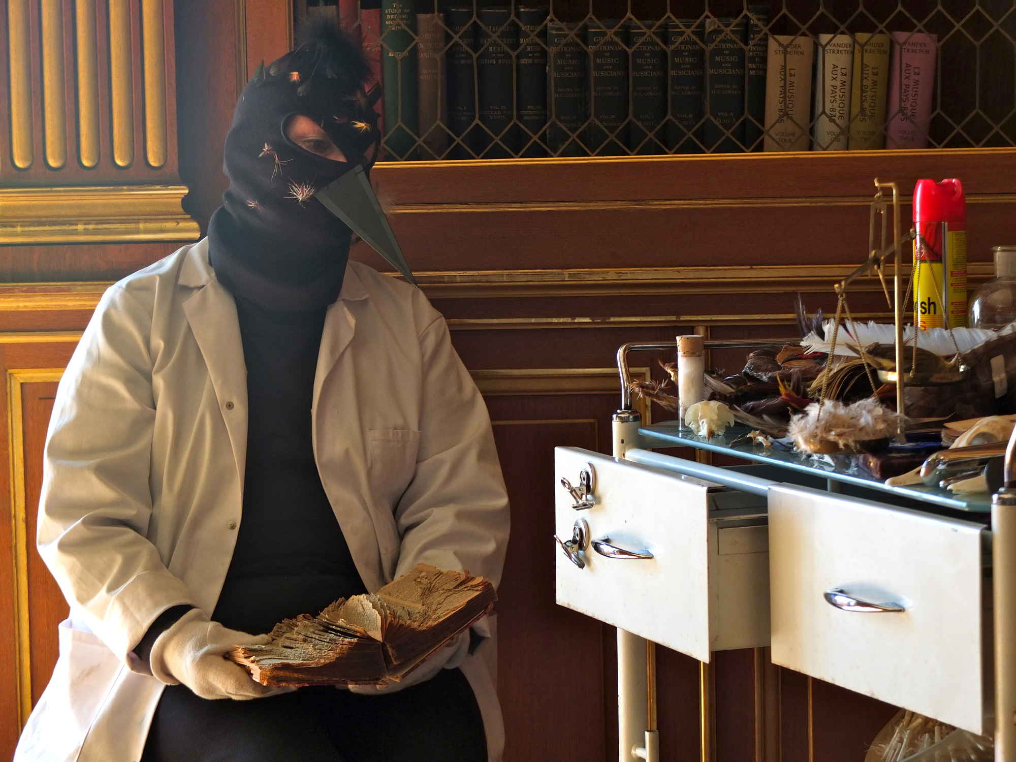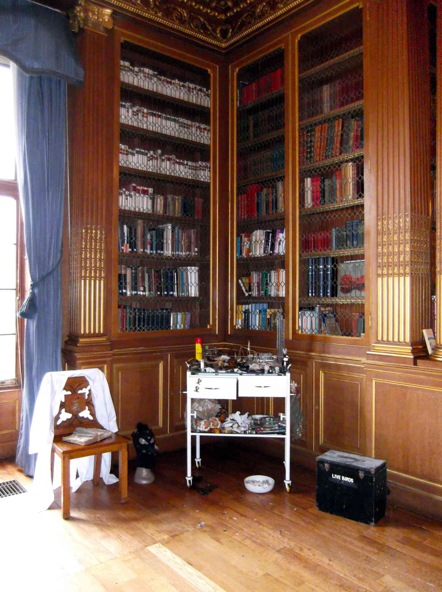 A tableau vivant staged in the library of West Dean House, originally the home of Edward James, patron and collector of the work of Surrealist artists Salvador Dali, Rene Magritte, Leonora Carrington and many others.