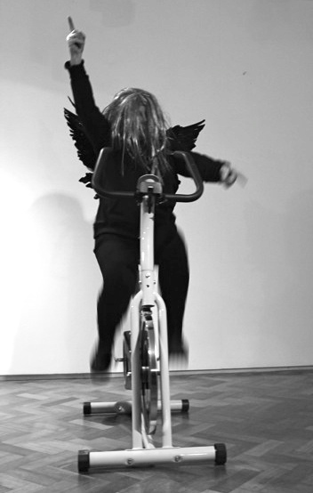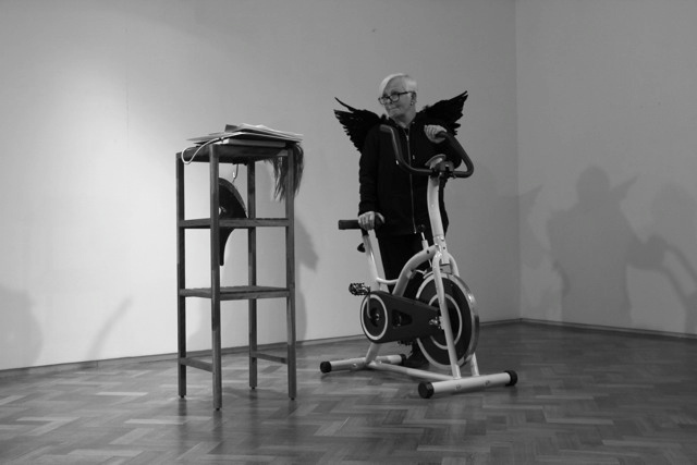 A 30 minute performance where I test run my newly acquired exercise bike. During the ride I demonstrate its value as an aid to enjoyment and creativity, drawing on a range of subjects from colour theory to American rappers, philosophy, feminism and fashion.