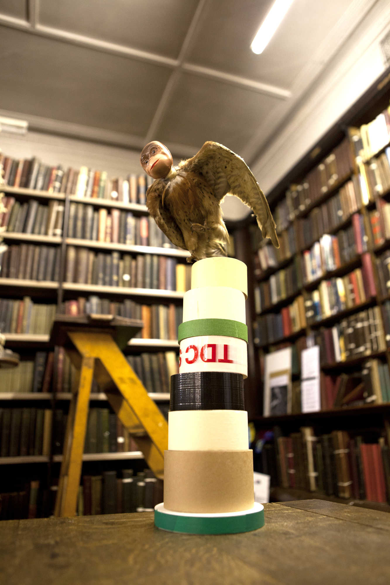 Swept gallery walkway for an hour, sometimes on hands and knees but mainly squatting so's not to get splinters. Wore face mask, apron and rubber gloves, got very hot and dusty. Interesting to think I have actually ingested some of this ancient and erudite dust, it has become part of the fabric of my being - if only temporarily, it does however make me feel quite sick and I can feel a headache coming on. As I sweep I note that Greek Mythology and the Biblical section are dustier than other sections, there is a damp stain on the floor near Social Sciences, Ethics gets a lot of sun and there are large gaps in the floorboards along the Spanish, French and German Literature sections. I am developing an affection for dust balls and also note there are some tiny book cover shreddings in my dustpan.