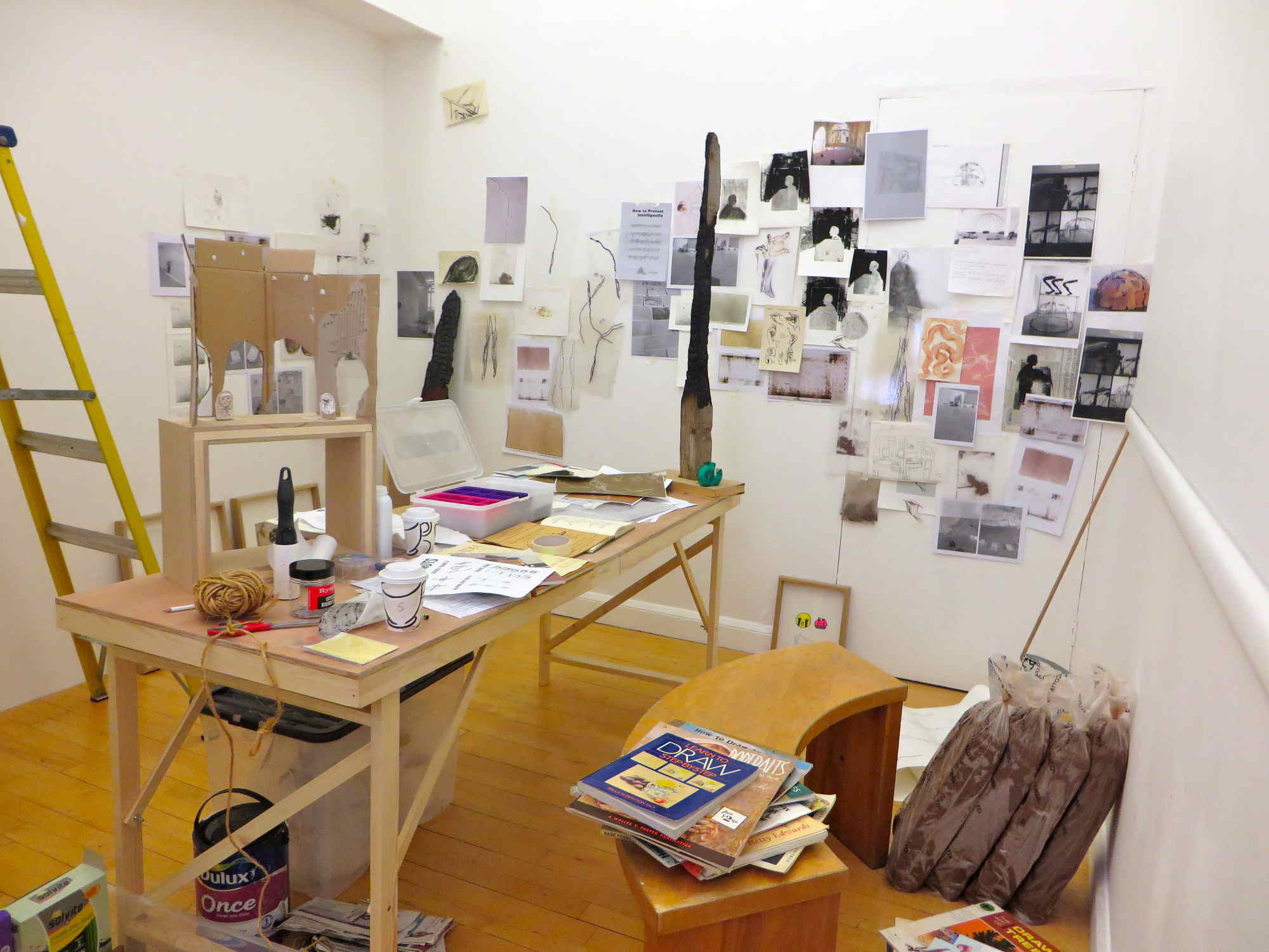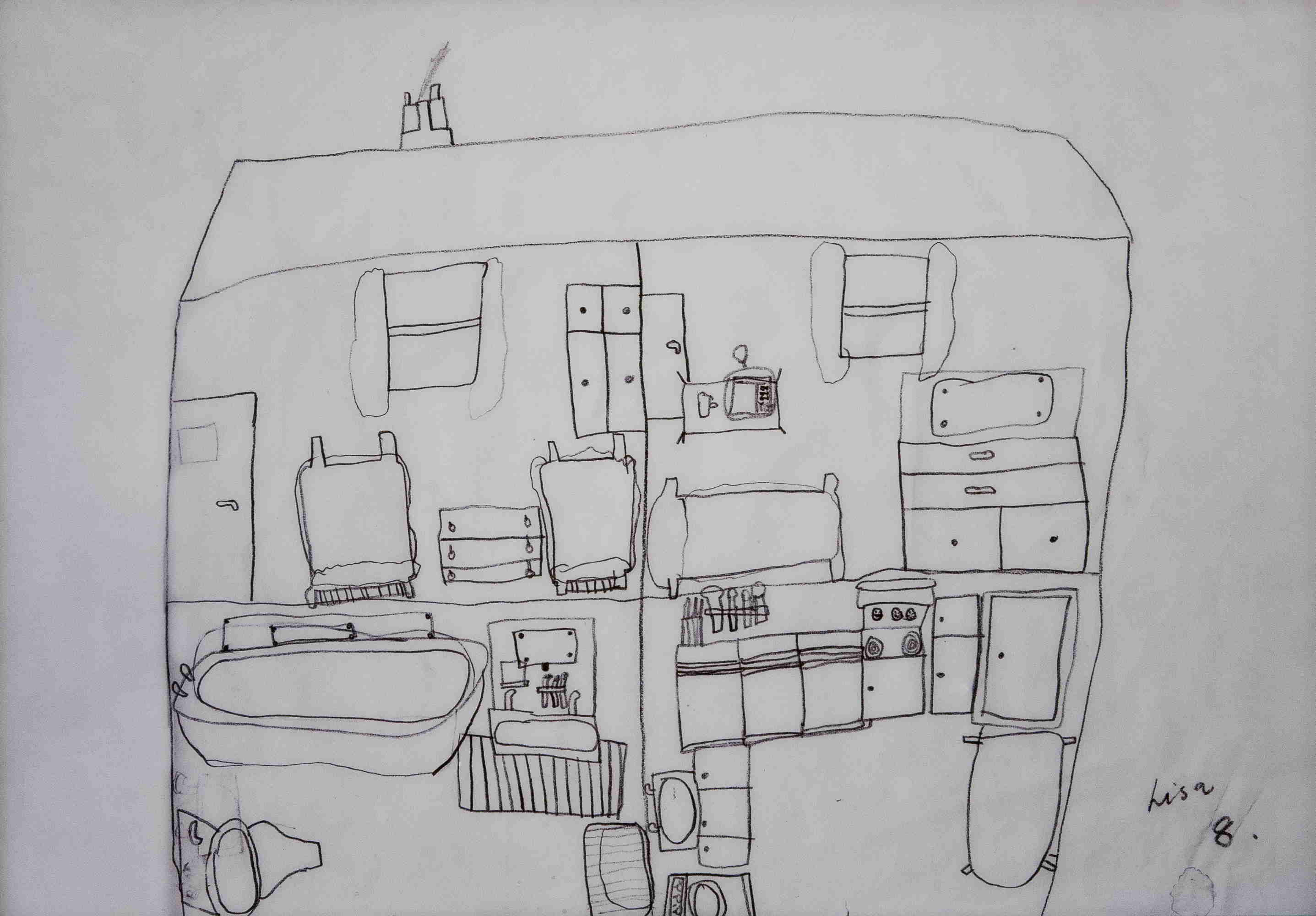 So, the main gallery becomes the site for an experiment in 'interior design', and the walls are marked, papered and hung with a selection of artist-produced, found and collected drawings. A large, sculptural piece which takes centre stage engages with the child's house and references various art historical precedents. 'How To Draw' manuals spanning several decades are laid out for reference, and the small anteroom off the gallery operates as a more intimate and unformulated 'studio' space. The installation might thus be interpreted as part museum, part personal archive and part 'design for living'.